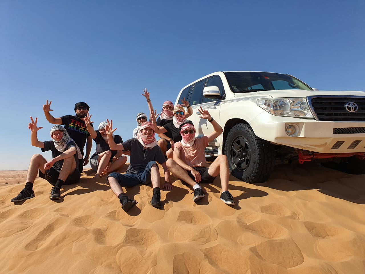 The sand, dune bashing is performed in a form of of a convoy of all the SUV land cruisers and this is approximately for 45 minutes drive up & down on sand dunes. A brief induction is performed by the licensed and highly trained desert safari drivers. That’s not it, you get to experience the traditional desert khaymah life style where you get to sit & relax on lowered tables, cushions and carpets at the campsite. At the campsite you are served with the starters, Arabian Dates, Arabian Tea, Live BBQ grill, with dinner buffet.